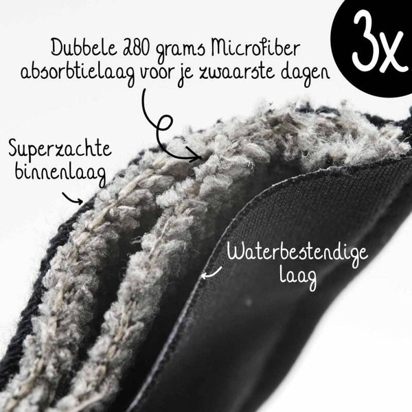 Dit wasbaar maandverband bestaat uit 4 lagen. De middenlaag bestaat altijd uit microfiber. Microfiber heeft namelijk een uitstekend absorbtievermogen. De heavy maandverband is uitgevoerd met dubbellaags microfiber, voor je zwaarste menstruatiedagen.