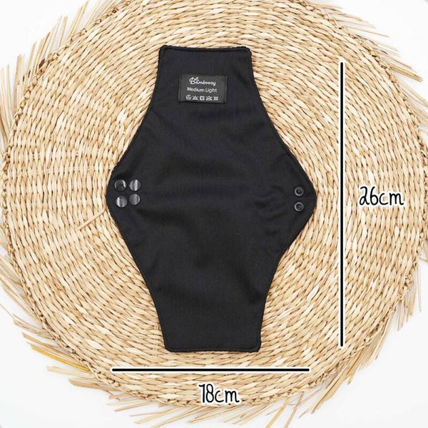 Wasbaar Maandverband 'Medium Light'/zwart 3 stuks - Bamboozy