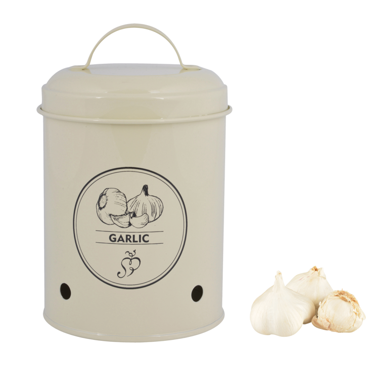 - Met deze authentieke voorraadblik kan knoflook ideaal in de keuken worden bewaard, met weinig kans op uitlopers.