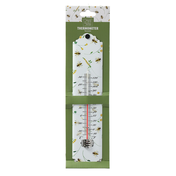 Deze zinken thermometer met bijenprint voegt niet alleen veel sfeer toe, maar geeft natuurlijk ook de temperatuur weer zowel in graden Celsius als in Fahrenheit.